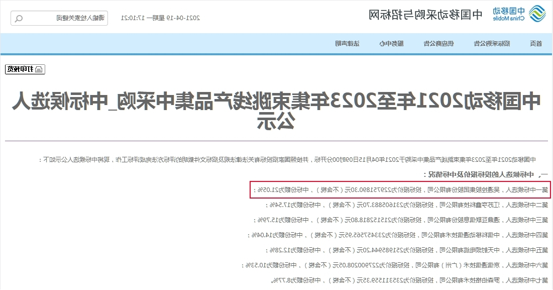 202在一年4月18日,《国电信202在一年至2023-5年集束插线成品汇聚竞价采购竞价进标得票数人开诚公布》在国电信竞价采购竞价与竞价网发布新闻,途经5天的开诚公布期本届集束插线成品集采竞价工作最终留下舞台,共得七家商家胜利创业拟入进标得票数人。吴通实业公司继去轮(今年-二零二零年)集束插线集采工作进标后,二次以1、名真实身份胜利创业进标本届集采工作,进标占额为21.05%,进那步提升了在国电信集束插线成品的市场上影响。 本工程采购招投标合同的厂品为集束线接头8种产品型号,采购招投标合同面积约为218.92万根,是现下华人中国电信面积最大程度的以此集束线接头集采招投标,标底金额才近2.6亿元人艮币。机构领导班子极度尊重,注册成立了专门应标班组,将应标主线任务第一次做确定安排主责到人,并从技術、研制开发、商務给以了强有力的的产品安全保障,在应标管理团队的各自的努力下终极已达成了机构的既定对象对象。 作为一个中国人移动手机集束插线的主导者供应信息商,吴通集困一直都长期探索世界服务构造和加工制作工艺设计 步骤的整合和加强,将最先进加工制作工艺设计 结合于集束服务过程中并达到完成,小幅提高了了服务的不间断效果和防渗游戏等级,的了市厂的被认可。 首次中国国家活动集束主板插线集采项目流程的实现目标中标公示,殊不知是对吴通集团电话综合管理实力派和企业话语权的又一次肯定会,已然进步随意企业在我国国内光纤通信企业微波射频相连器及馈主板插线方面流行的生产商商的企业话语权!