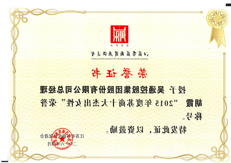 吴通集团总经理胡霞荣获金茉莉杰出奖•2015年度苏商十大杰出女性称号