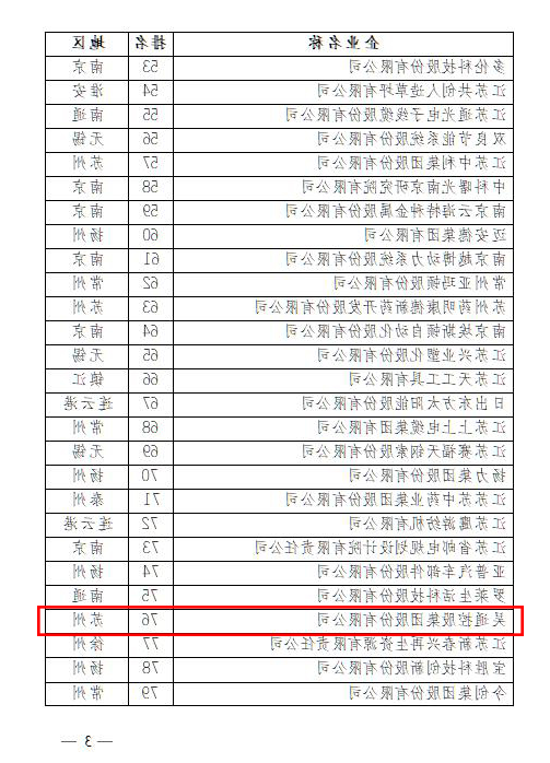 吴通集团上榜2017江苏省创新型企业100强第76位