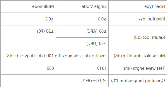 1. Plug types include SC, FC, LC, ST, MU, MTRJ, DIN, etc., and end face types include PC, UPC, APC, etc., which can be flexibly selected according to customer needs.